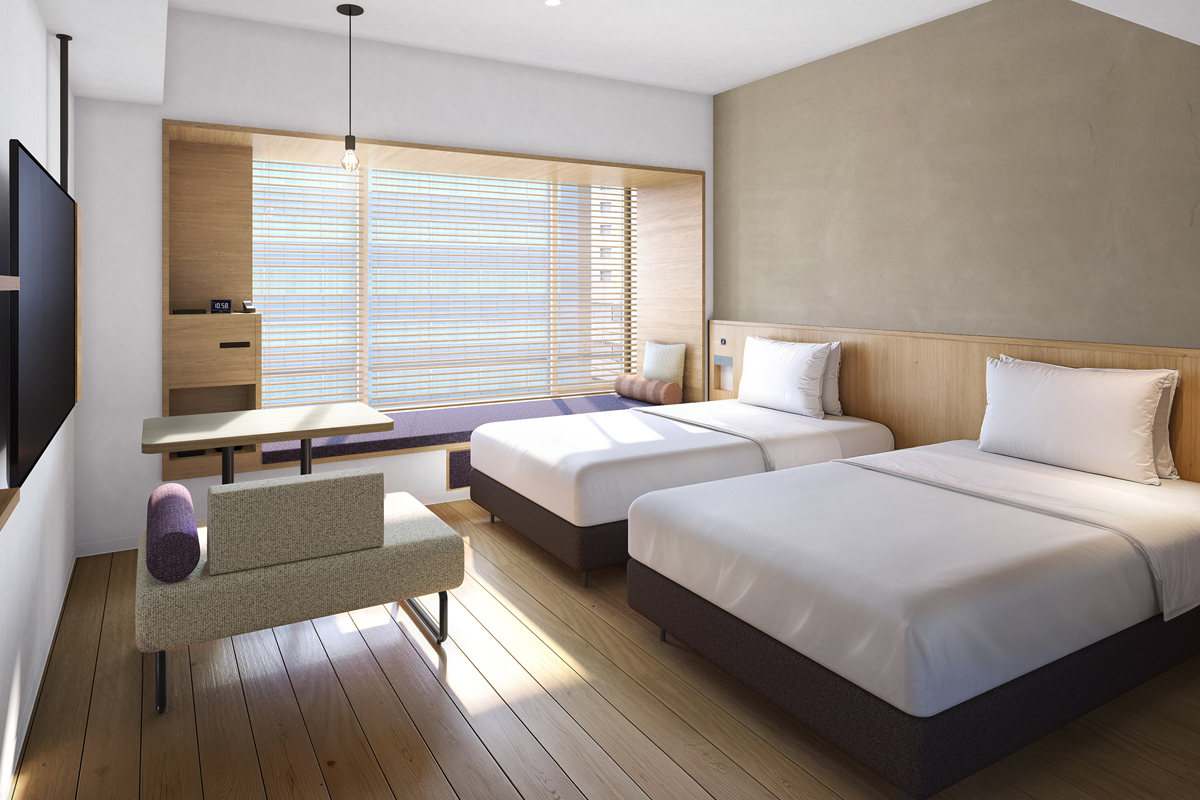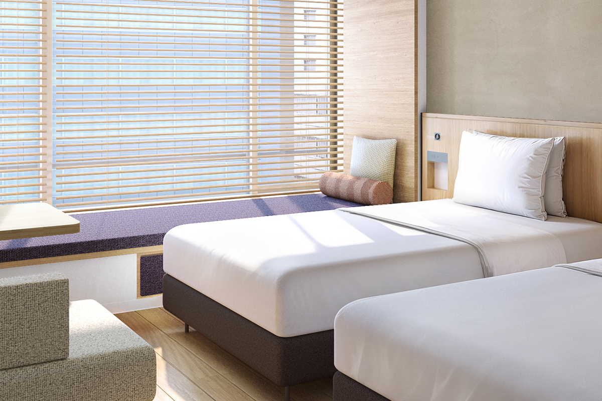 | Room features | Kitchenette(no stove), Bath, Shower, Wash basin, Individual air conditioning, Wi-Fi, Washlet bidet toilet, Nihon Bed(luxury hotel bed brand), Microwave, Fridge-freezer, Electric kettle, Phone, Safety box, 50-inch LCD Smart TV, Air purifier with humidifier |
